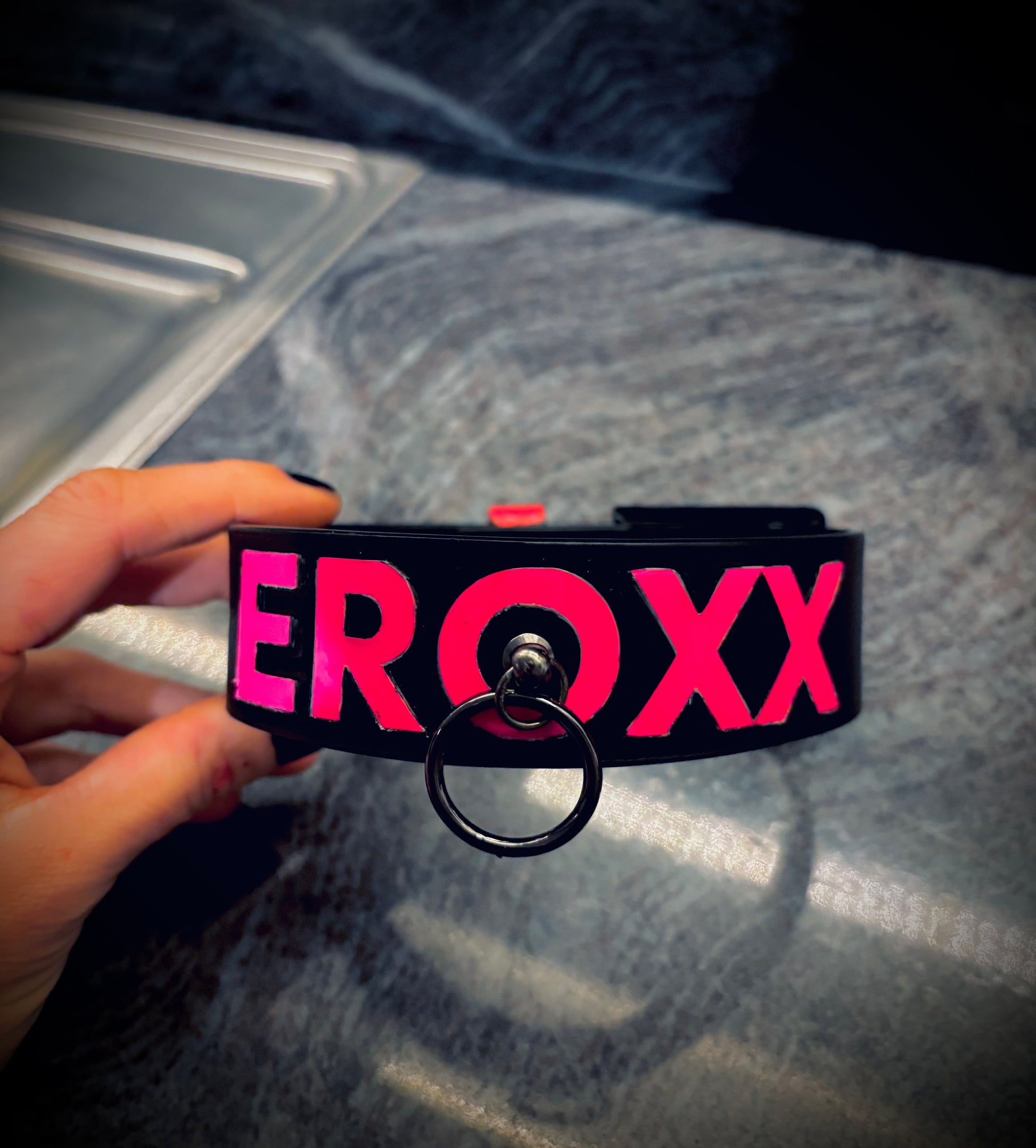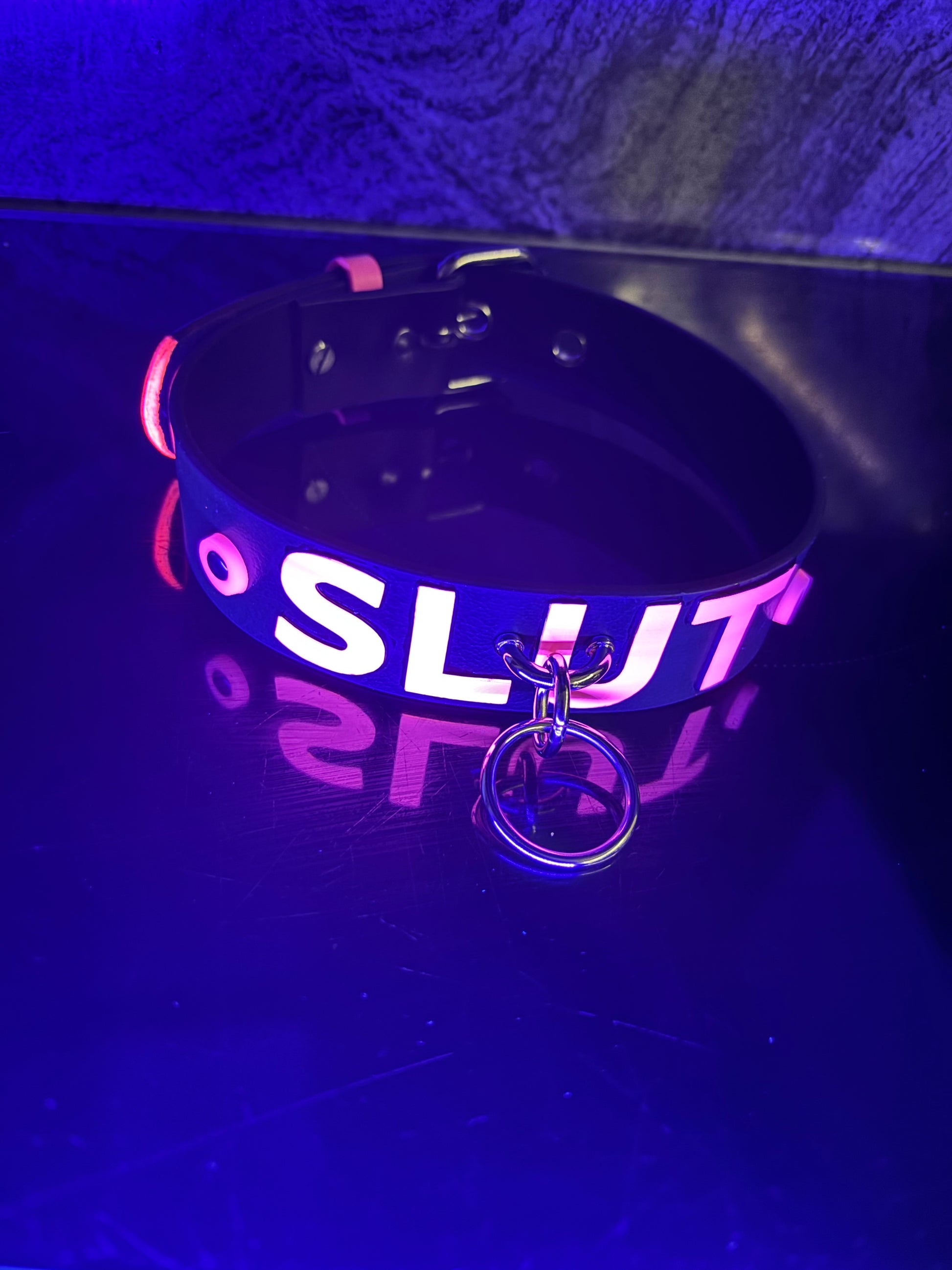 Met trots introduceren we de Big Black Choker (BBC) – een stoere, zwarte band met opvallende neon letters die oplichten onder blacklight! Verkrijgbaar in een lichte PU-leer versie of een stevige echt leren uitvoering voor een robuuster gevoel.