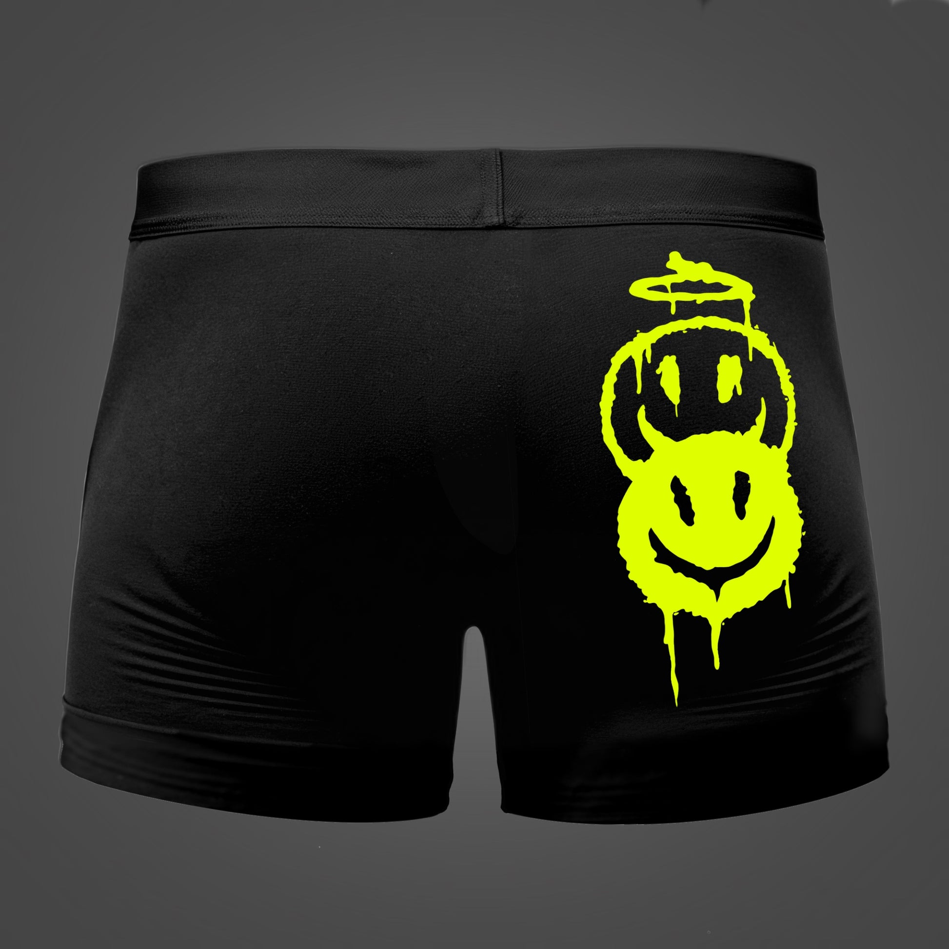 Engel of duivel? Met deze speelse boxer hoef je niet te kiezen! De mix van engel- en duivelsmileys geeft een ondeugende twist aan jouw ondergoed. Perfect voor wie graag een beetje dubbelzinnig blijft.